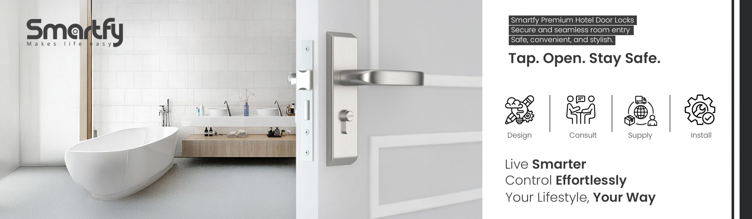Enjoy effortless bathroom access with Smartfy locks designed for guest comfort and hotel security. Built for modern rooms, they combine reliability with elegant design.